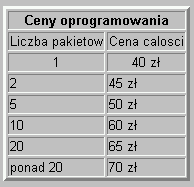 <TR><TH colspan=2><CENTER>Ceny oprogramowania</CENTER></TH></TR>